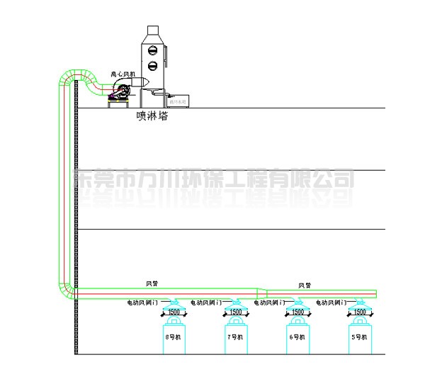 根據(jù)廠方提供的資料及現(xiàn)場勘察的情況,我司可以確定該廠的廢氣為“氨氣”。根據(jù)該廢氣的性質,萬川環(huán)保決定為該廠選定設備為--噴淋塔。(工藝簡圖如下)